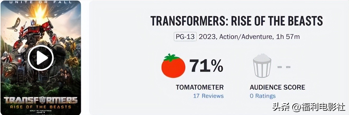 《变形金刚7》目前豆瓣6.4分,烂番茄新鲜度71%,对于爆米花大片来说,口碑算不错了。