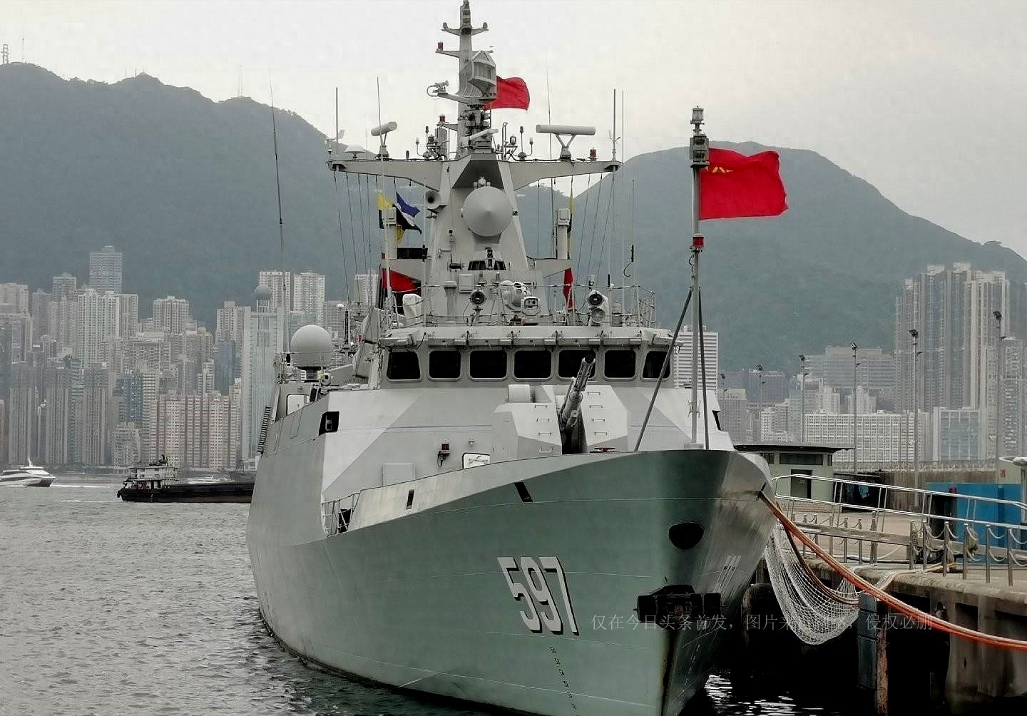 在武器装备方面,驻港部队的海军舰艇大队装备有包括轻型护卫舰、大型导弹艇、近海登陆舰和交通艇等在内的10余艘作战舰艇。其中,两艘056A轻护卫舰,即宿迁舰和荆门舰,是驻港部队最强大的战舰,具备优异的反潜能力。这两艘护卫舰于2021年10月26日进驻香港,取代了早期的056型惠州舰和钦州舰,而惠州舰和钦州舰则转隶海警部队,改装为海警船。