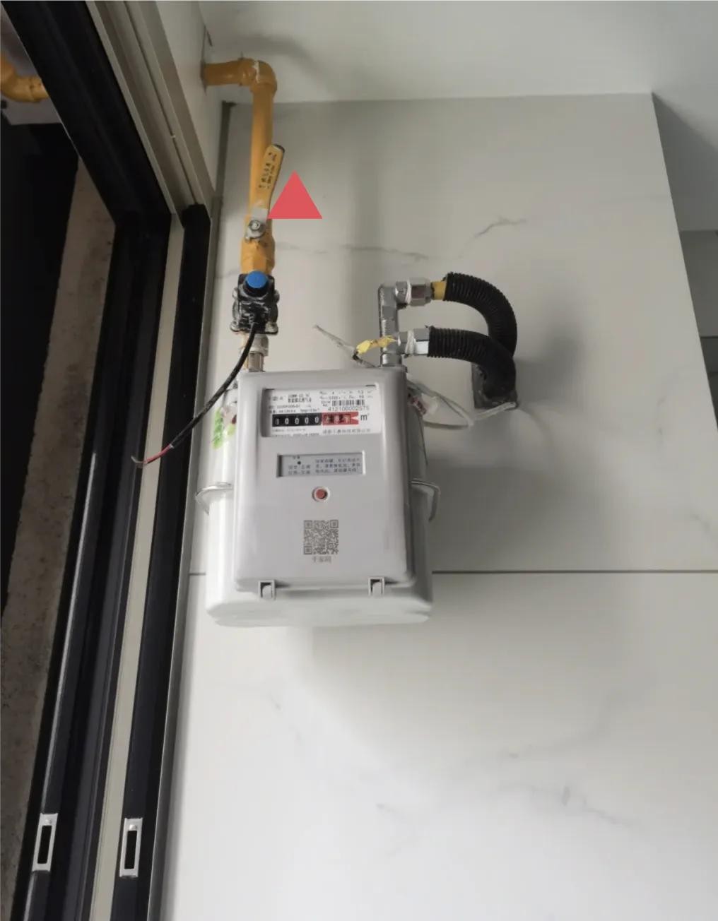 友情提示:上图这种燃气总闸是锁闭阀,一旦关上后就锁死了,开启时需要专用封闭阀钥匙才能打开,如果用扳手强行拧开的话,会损坏阀体。若是不小心关上了,只能求助燃气公司售后解决。如总闸是下图这种手柄总闸,开启关闭自己操作就行。