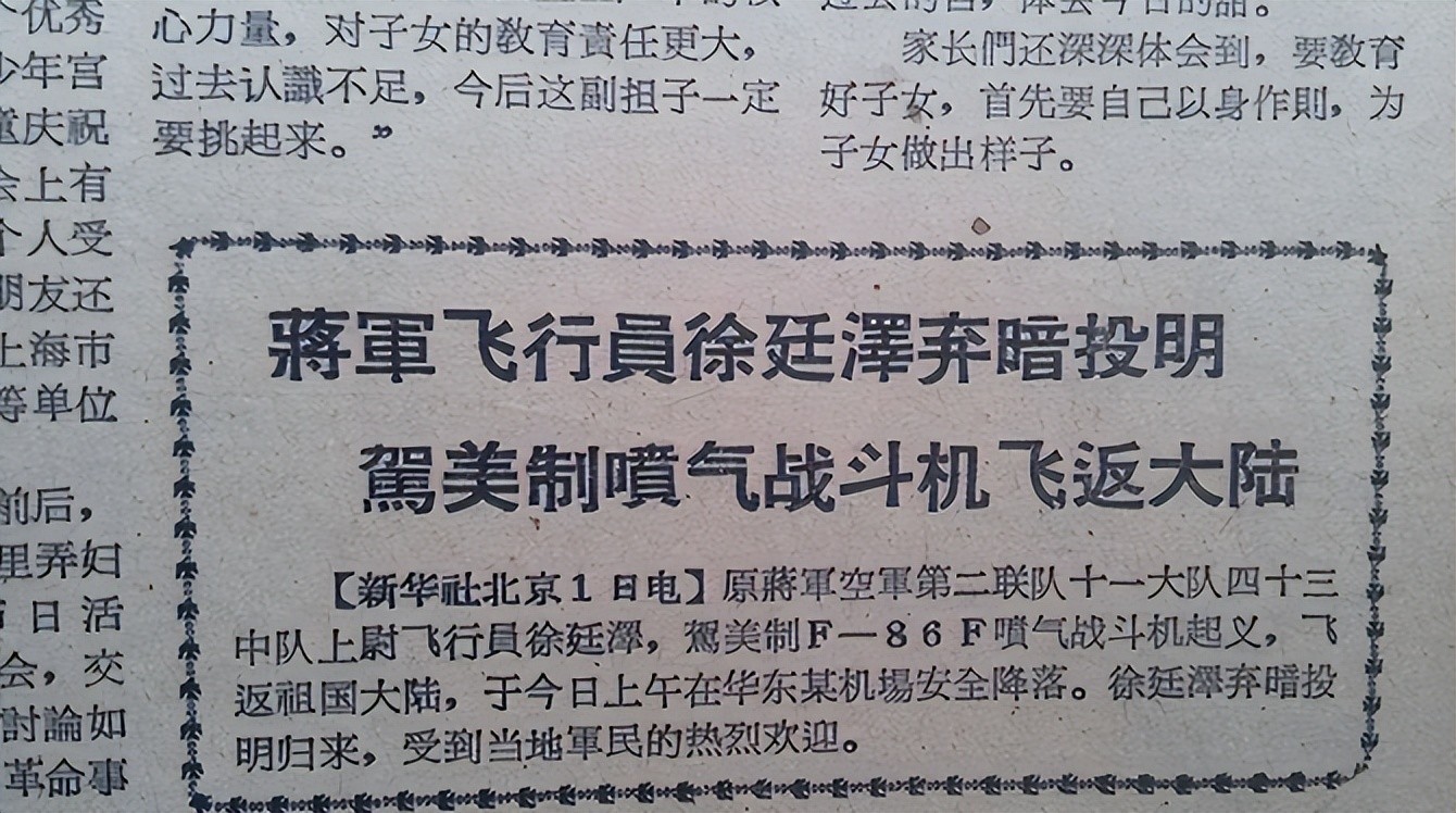 1963年6月1日,一场惊险刺激的事件在两岸掀起了轩然大波。一架美国制造的F-86F喷气式战斗机穿越台湾海峡,降落在了大陆的福州机场,机上的飞行员竟是一位名叫徐廷泽的台湾空军上尉。他单枪匹马完成了这次危险的穿越,成为新中国成立以来第一位驾机起义回到大陆的空中英雄。这一举动引起了两岸舆论的广泛讨论,人们都好奇地想知道,这位飞行员为何要冒着生命危险,驾驶飞机回到大陆呢?