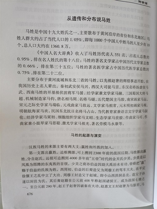 马姓是中国十九大姓氏之一,主要散布于黄河沿岸的省份和东北地区。马姓人群大约占了当代人口的1.05%,即每1000个中国人中姓马的人至少有10个,总人口大约在1360.8万。