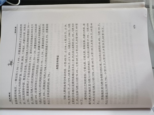 马姓人群的血型分布总的是:0型420万,占31%;A型375万,占28.