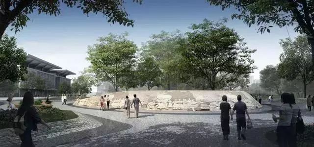 新建北广场以丹凤门为核心,以御道和两坊格局为框架,各类建筑以"保护文物、传承文脉、塑造特色"为主题,通过建筑退让丹凤门、高度控制和风貌设计实现对丹凤门等历史建筑的保护和尊重,建筑风格以传统建筑形式为主,增加现代元素,塑造一个现代与传统呼应、景观与功能融合的城市广场,不仅为火车站旅客服务,也为市民服务,成为西安市的会客厅。