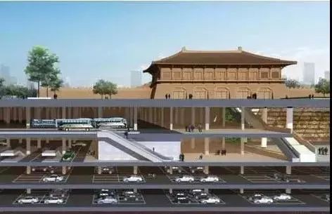 因项目用地狭窄,且考虑到车辆对丹凤门的干扰,设计充分挖掘地下空间,将交通功能布置在地下,做到"无缝换乘、快速疏散,立体交通,人车分流"。