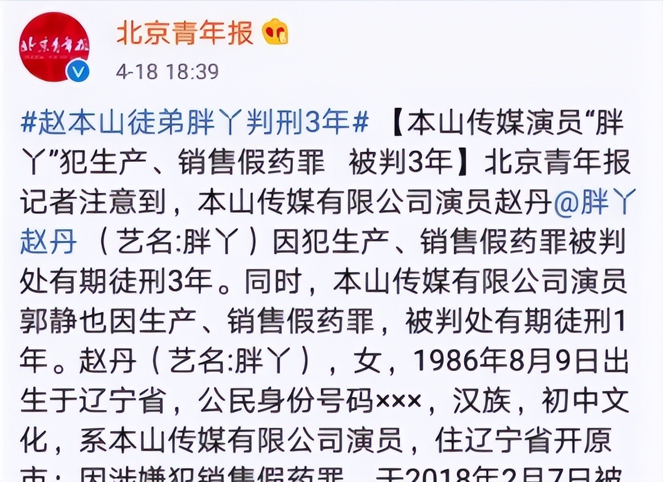 胖丫这心里就更慌了,后来就跑去搞直播带货,卖自己弄的 “减肥药”。她仗着自己有点名气,在直播间里可劲儿地夸这药有多好。好多人就信了她的话,买了不少,她也挣了不少钱。可这药根本就没经过科学验证,也没检查过,好多人吃了都出了问题。这事儿很快就被发现了,2018 年,胖丫就因为生产、销售假药被警察抓了,最后判了三年刑。