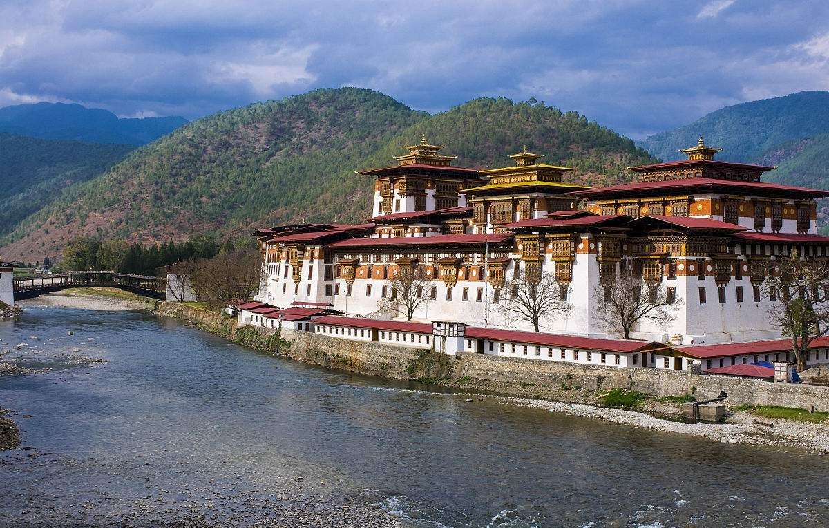 不丹王国位于喜马拉雅山脉东段南坡,其东面、北面、西面与我国西藏地区接壤,南面与印度锡金邦接壤,是标准的内陆国家。