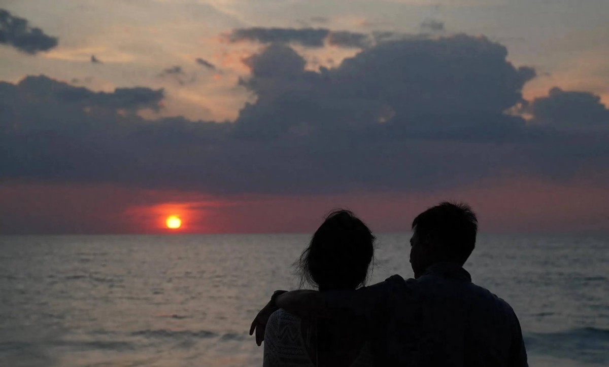 孙莉晒泰国度假照,与黄磊海边偎依看日落,7岁儿子帅气似金城武