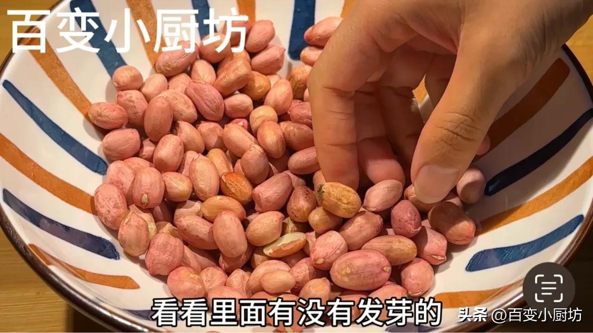 首先我们准备适量的花生米,接着将花生米挑选一下,看看里面有没有发芽的甚至是发霉的花生米,有的话一定要把它挑拣出来,这样的花生米味道发苦,不挑拣出来的话就是一颗老鼠屎,打坏一锅汤了。