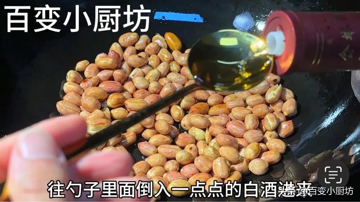 白酒倒进来之后,会发出噼噼啪啪的声音,这是正常现象,过一会儿就被完全蒸发掉了。加了白酒之后,焯出来的花生米吃起来口感更香,更具有层次感,而且也更具有风味性。最主要的是白酒还具有消毒杀菌的作用,可以保证咱们的花生米不回炒,不变软,不发霉,这是很多酒店都在用的技巧。