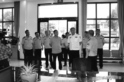 洛阳市副市长、市公安局局长李保兴(右四),孟津县委书记杨劭春(左四),孟津县公安局局长张磊强(左三)实地查看“枫桥式派出所”创建工作