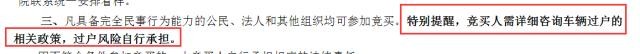 (特别提醒,竞买人需详细咨询车辆过户的相关政策,过户风险自行承担。)