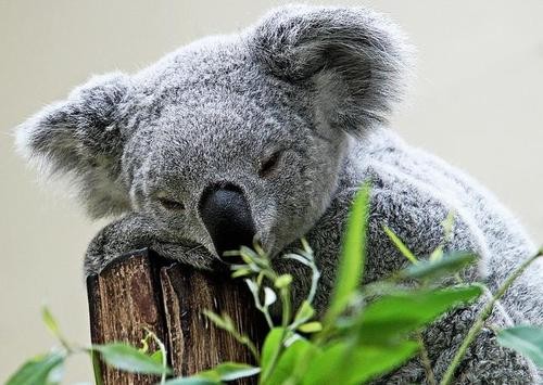 考拉每天大概要睡18个小时,一般都只生活在桉树林中,所需要的水分都从桉树叶中获得。澳大利亚的考拉真的只有生病和干旱的时候才明确自己要喝水。