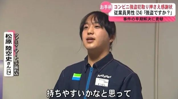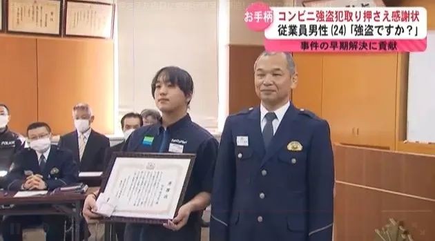 警长上别府高宏表示:“小伙勇敢行动,迅速抓获强盗,为社区安全做出了贡献。真的非常感谢。”