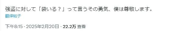 “希望店员小哥对强盗说:一个塑料袋收费3日元(约合人民币0.15元)……”