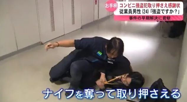 他从背后夺走强盗手上的刀,接着将强盗压在地上。由于当时是半夜,一时没有旁人帮忙,