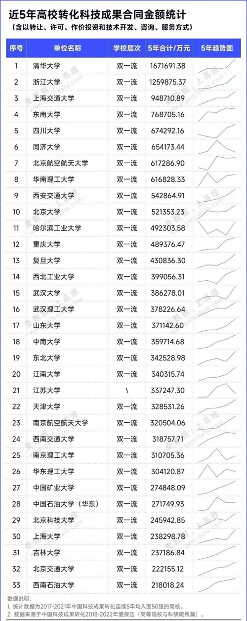 在2023年近5年高校转化科技成果合同金额统计排名中,华南理工大学以61.68亿的转化金额,排名全国高校排名第8名!