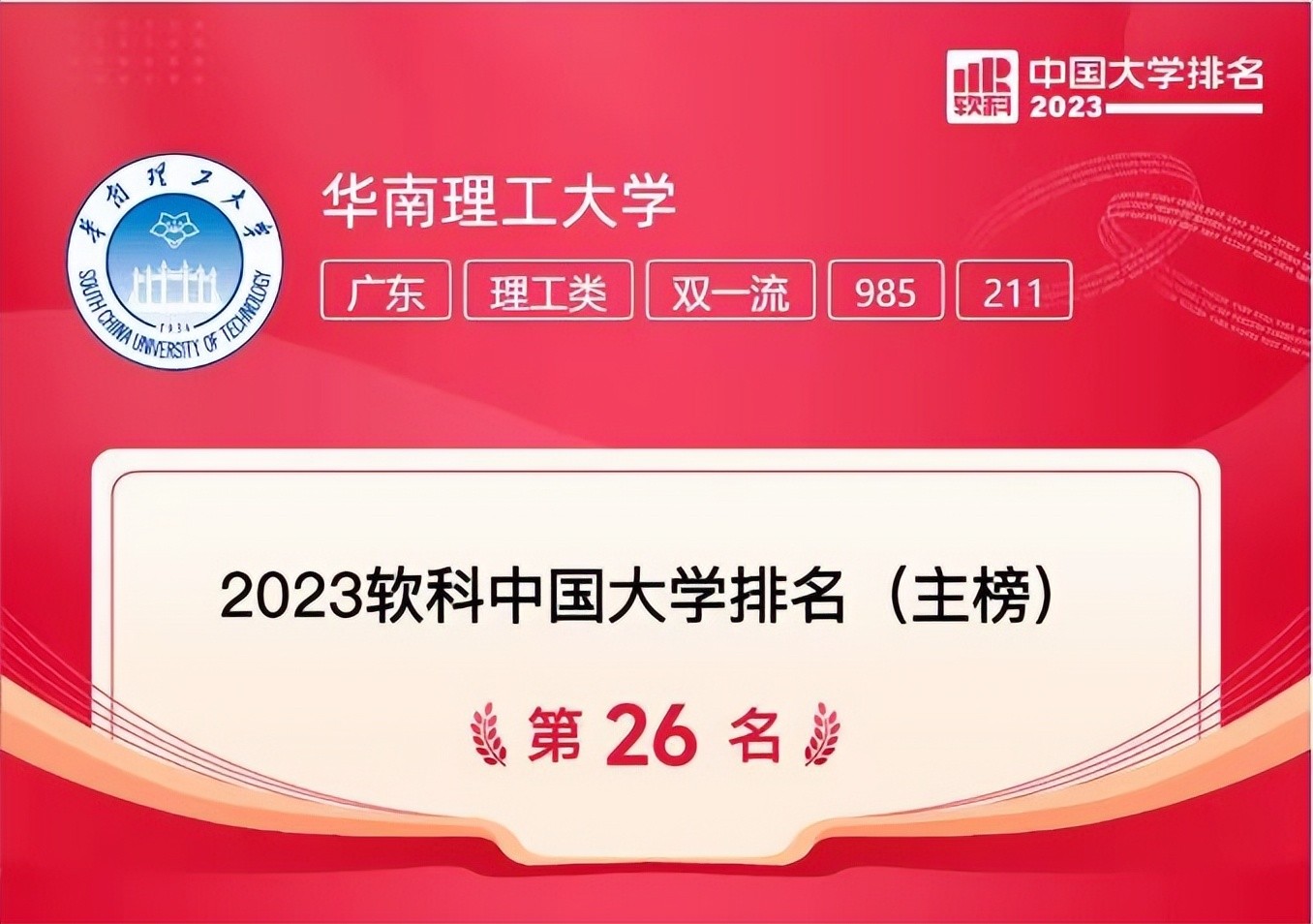 通过上面2023年软科全国高校排名榜,我们可以看到,华南理工大学排名全国第26名;