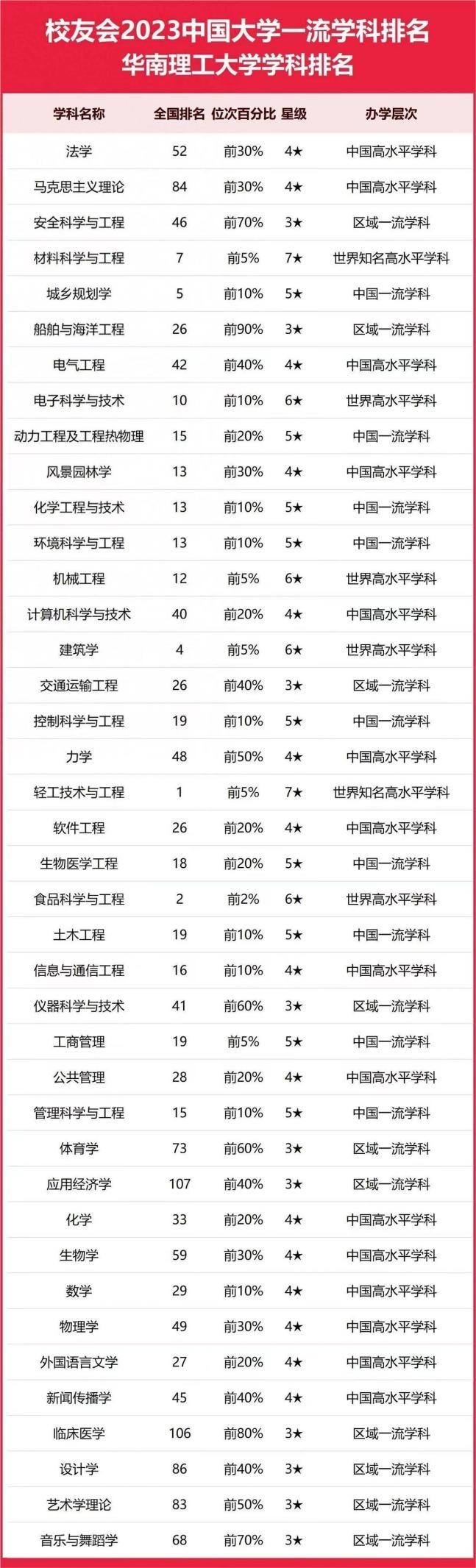 最后,让我们看看近期2023年华南理工大学各学科的具体实力情况吧!