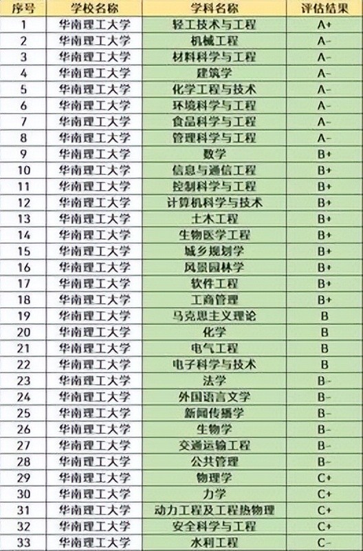 在全国高校第4轮学科评估中,华南理工大学共有33个学科上榜,其中共有8个A类学科,这8个A类学科分别是——