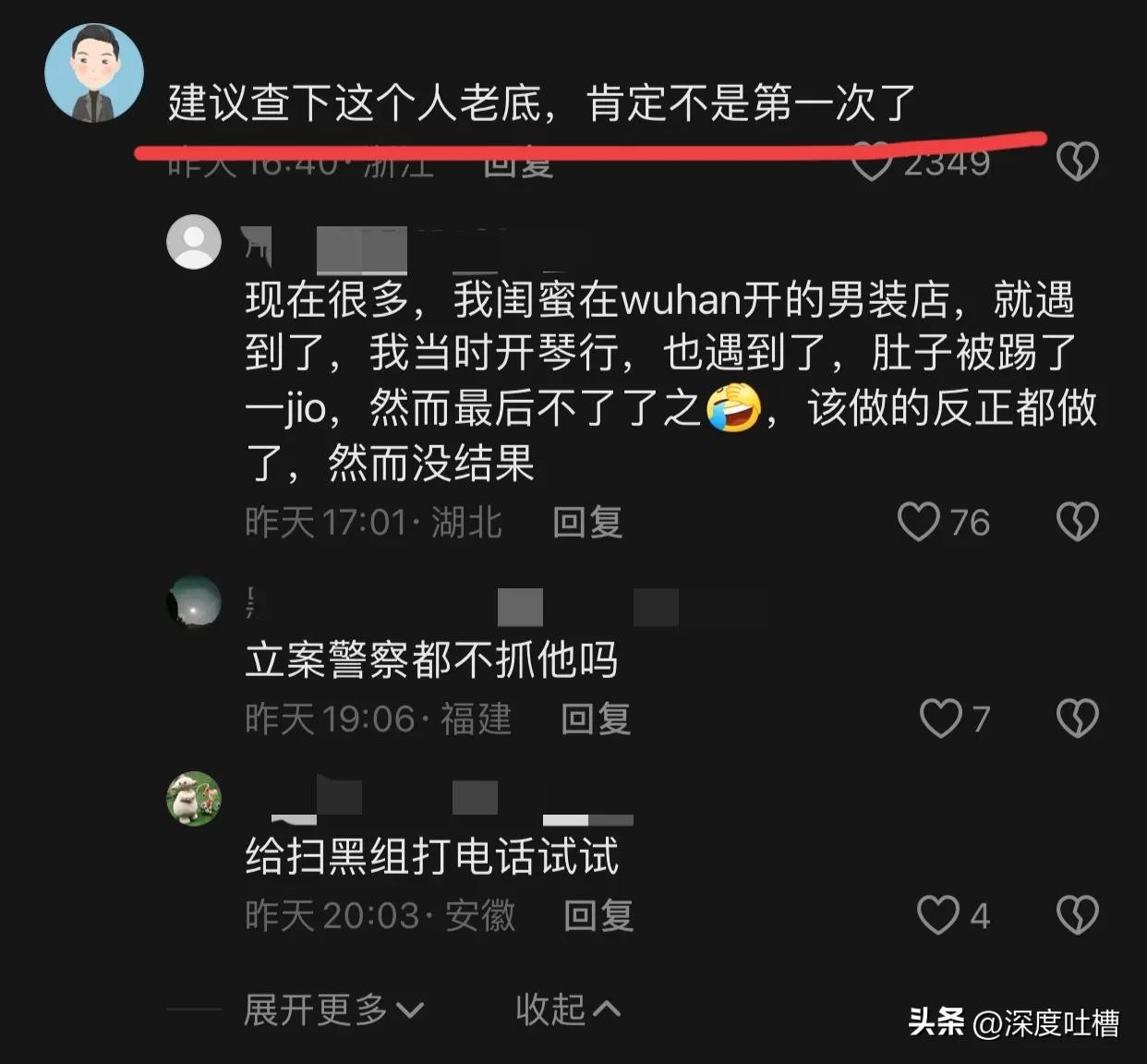 浙江一网友说:“建议查一下这个人老底,肯定不是第一次了”