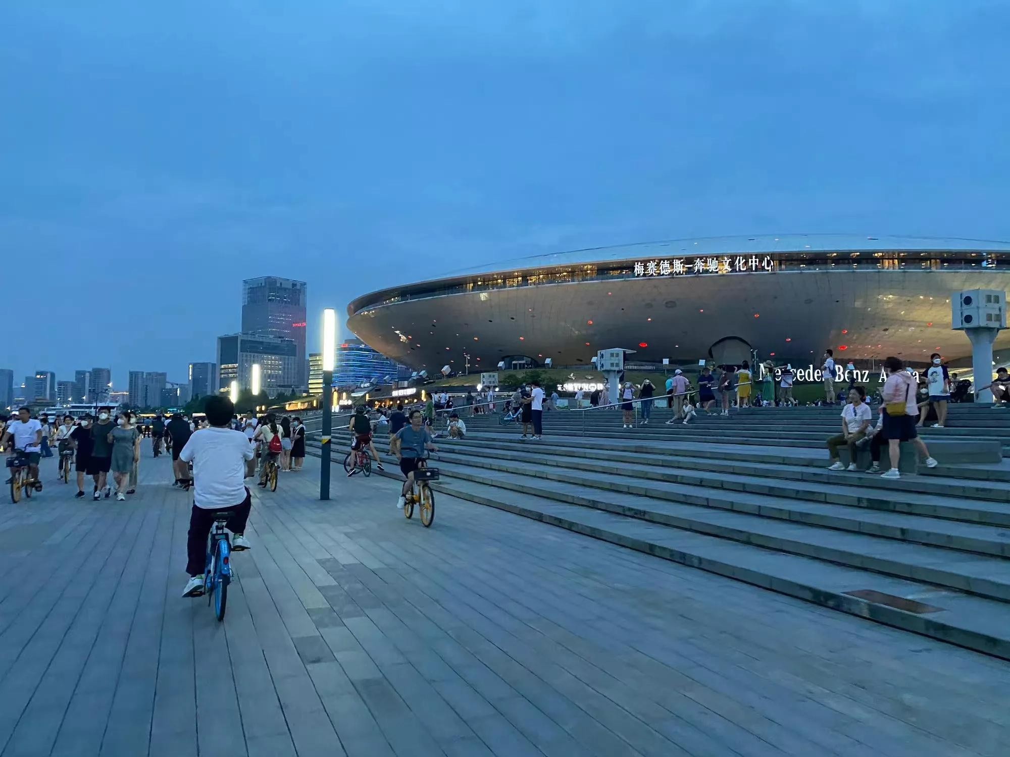 世博园的特色地标建筑,比如飞碟外观设计的梅赛德斯奔驰中心。
