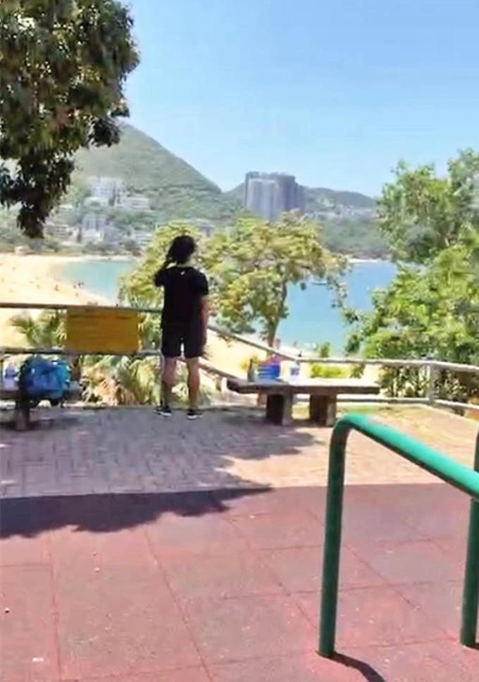 郑伊健没有正脸出镜,直到最后直播教练拿镜头对准了他,也只有背影出镜。郑伊健身穿纯黑色短裤短T出镜打扮似路人,不过他身材健美结实,依旧很有男明星气派。