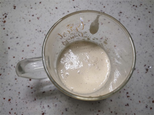 4、160克温水加入5克酵母粉,搅拌至酵母融化,酵母水中出现气泡,酵母恢复活性。