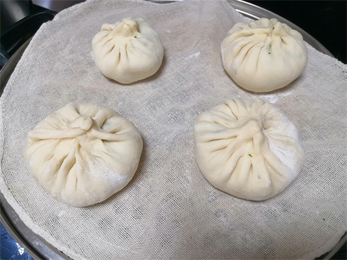 10、盖上锅盖,直接开火,蒸,水开后再蒸13分钟,关火焖3分钟,即可出锅,宣软味美的山麻楂五花肉大包子就做好了。