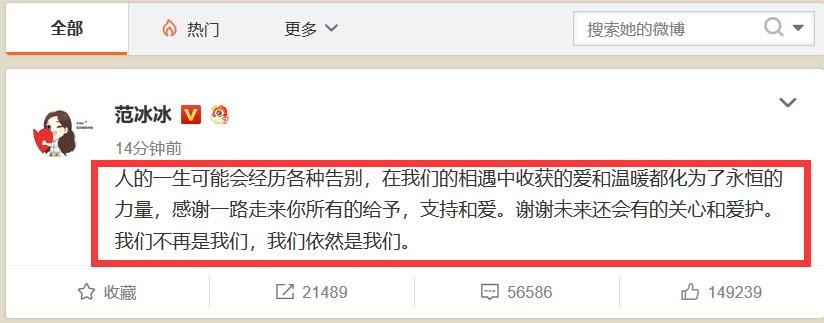 20:30分左右,范冰冰毫无征兆的发了一条微博: