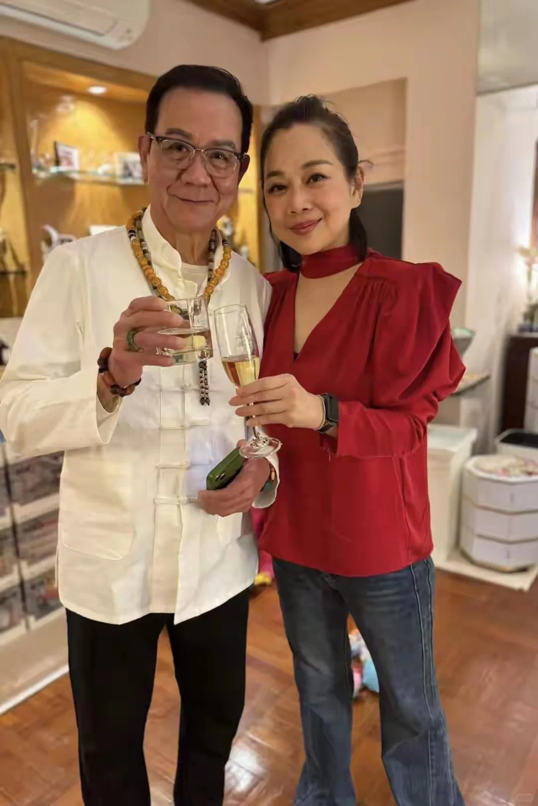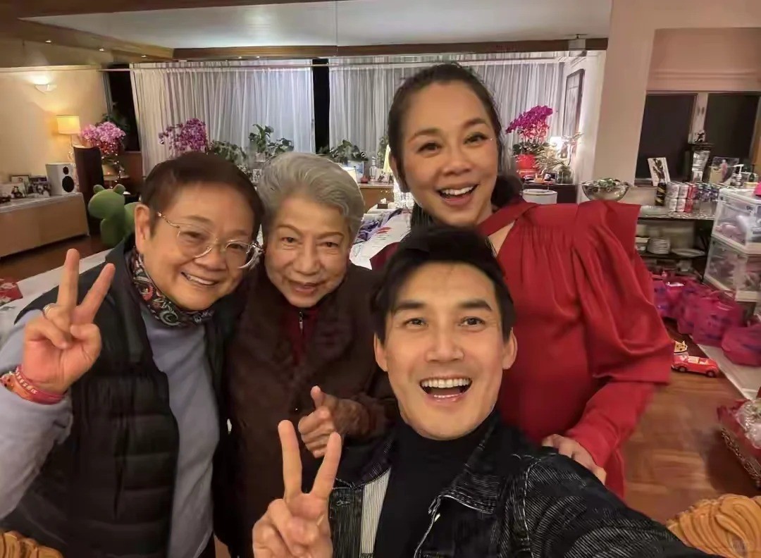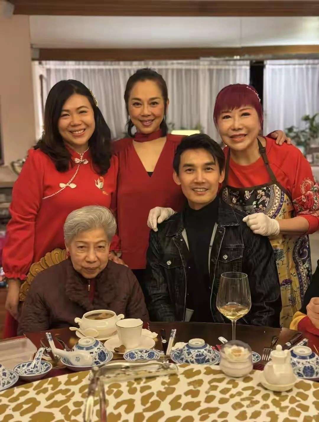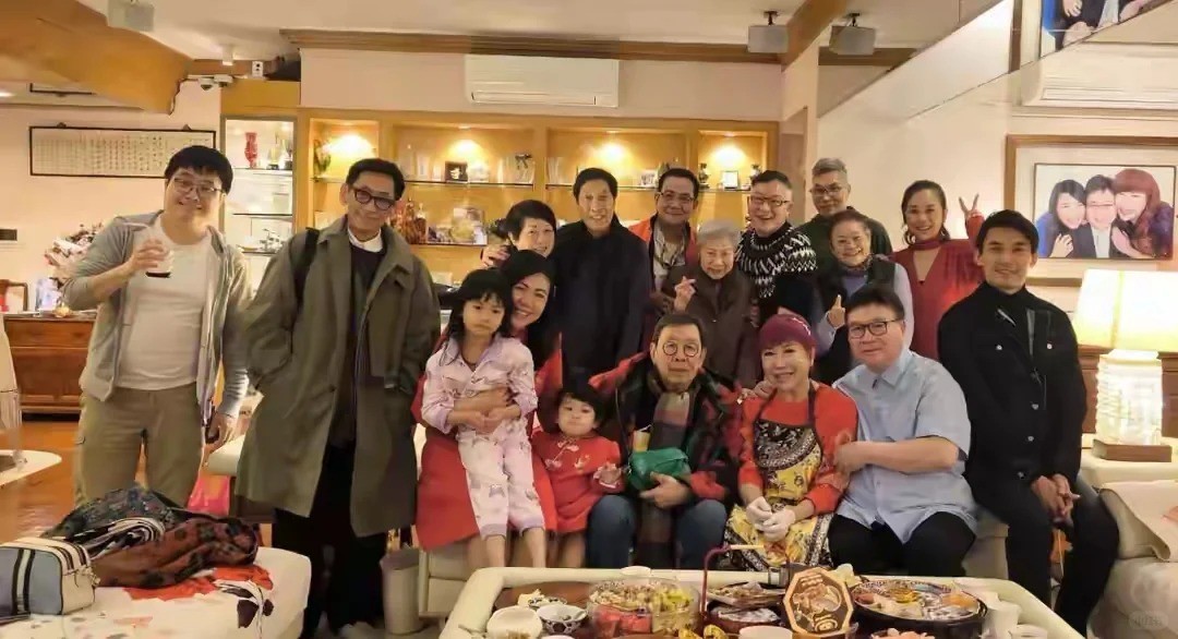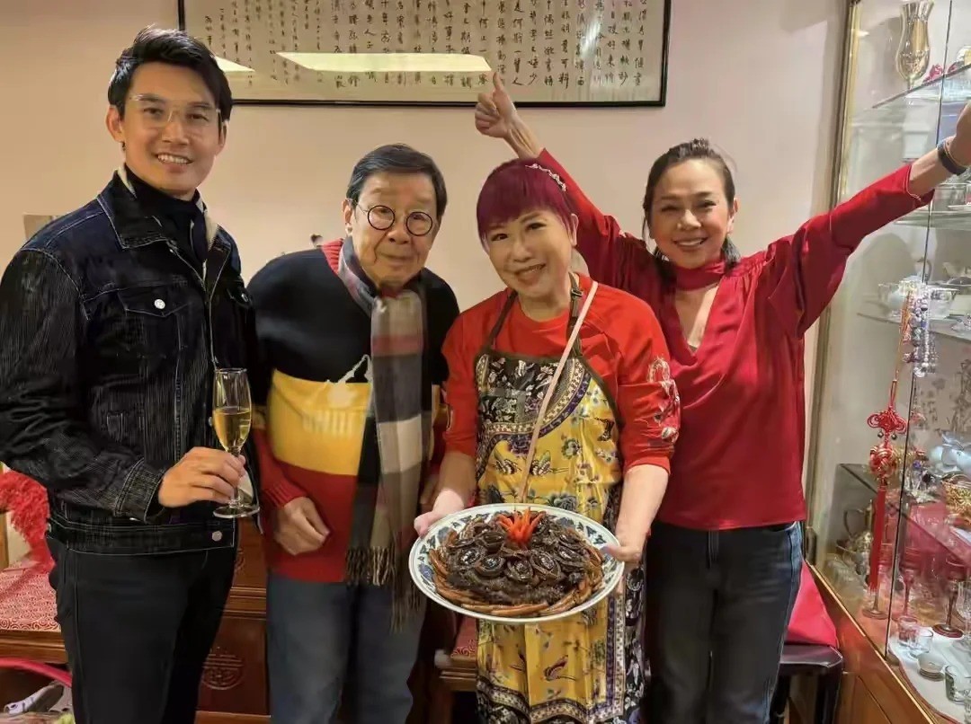 除夕当晚,陈松伶和老公张铎还有好多老朋友相聚,真是有聊不完的话题,罗兰、胡枫、汪曼玲、潘志文、连炎辉这些大家都很熟悉的面孔,现场特别热闹,也特别温馨。吃饭前,他们还一起拍了照片留念。