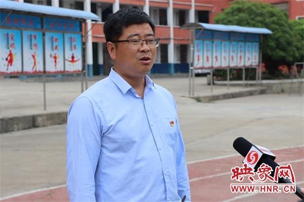 阳光中学党支部书记王道平接受记者采访