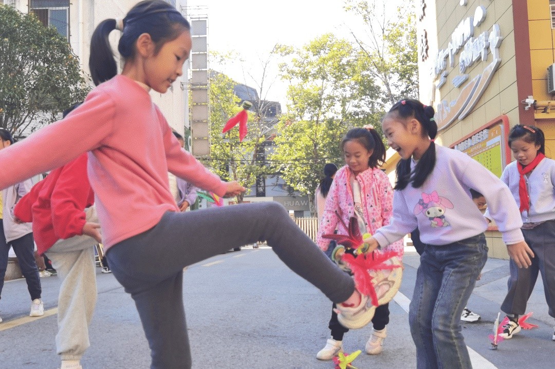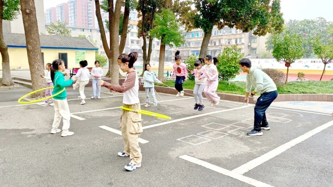 把课间时间还给学生,枝江市团结路小学将跳皮筋、踢毽子、跳长绳、滚铁环等传统体育游戏搬进校园,这些简单易行、趣味性强的运动项目,吸引着学生热情参与,在运动中增进友谊、共同成长。