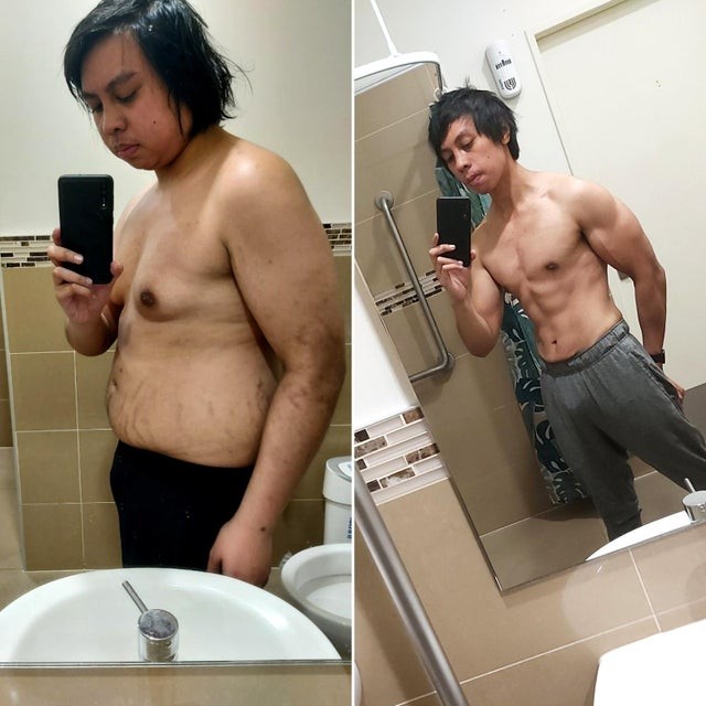 24岁,3年时间,瘦了46公斤,从132kg到86kg。