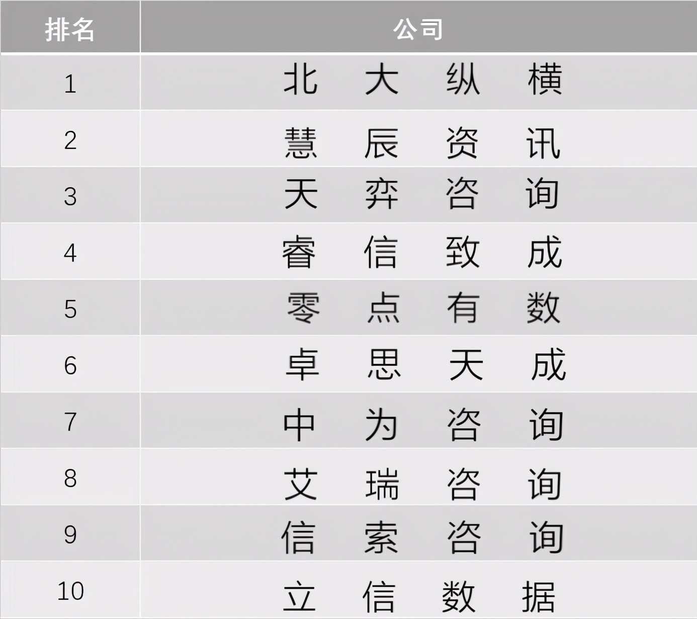 1.北大纵横:以管理咨询为中心,大力拓展商学、资本、人才等多个领域的业务,为企业提供全方位服务。集团总部设在北京并在中国二十多个城市有分支机构,拥有近千名全职专业咨询师。