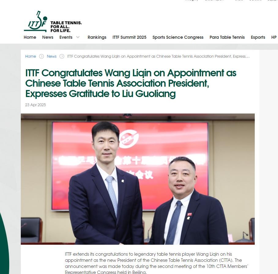 发文中还提到,国际乒联同样期待和新任主席王励勤以及新的中国乒协领导团队紧密合作。