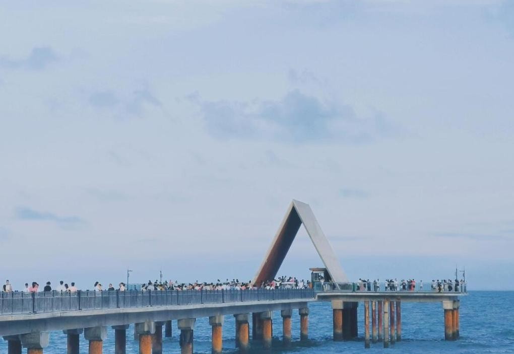 除此之外,金沙湾还有观海长廊,是观赏湛江湾大桥全貌的最佳地点。无论是清晨等待日出,还是傍晚赏夕阳,这里都是拍照和放松的绝佳地点。