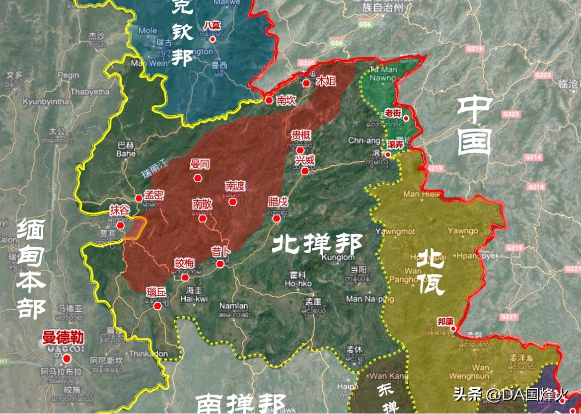 德昂族在缅甸的聚居区主要在缅甸的北掸邦一带,包括南散、曼同、贵概等13个镇区,这里也是德昂军的主要活动区域和势力范围。从面积上看,德昂军的影响范围超过1.5万平方公里,影响人口超80万人,从基本实力上说,确实比果敢地区2700多平方公里和20多万人口要多得多。但是,德昂军比较稳固的核心区域,也就是南散、曼同镇、孟密镇、贵概等少数几个镇区,并没有在广大的范围内达到实控。