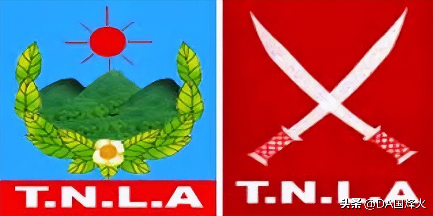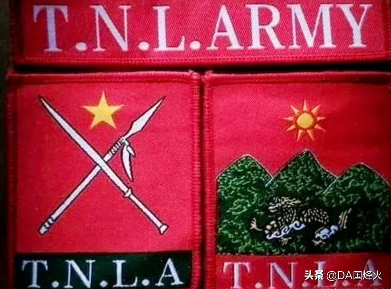 l旧版左侧臂章为茶叶围绕三座山峰上一个太阳,右侧臂章为两把刀,两侧臂章下面为TNLA字样