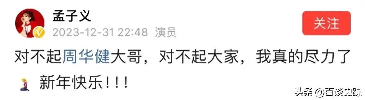 在事件持续发酵后,孟子义本人也公开在微博上承认了自己的失误,并向周华健老师道歉。透露出她内心的愧疚和自责。作为一位艺人,孟子义深知自己在舞台上的表现对于观众的重要性。