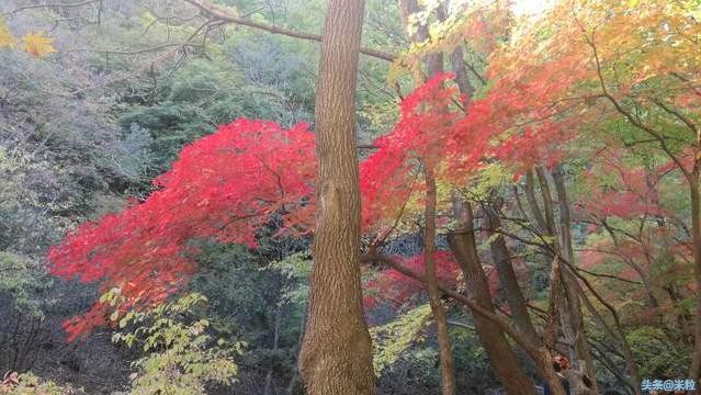 这样的“枫”景,这样的枫之物语,就在两山之间的峡谷中,伴着峡谷的走向,忽左忽右,忽上忽下,忽疾忽缓,蜿蜒着,闪烁着,不知从哪里起步,一直走到“关门山”的深处。