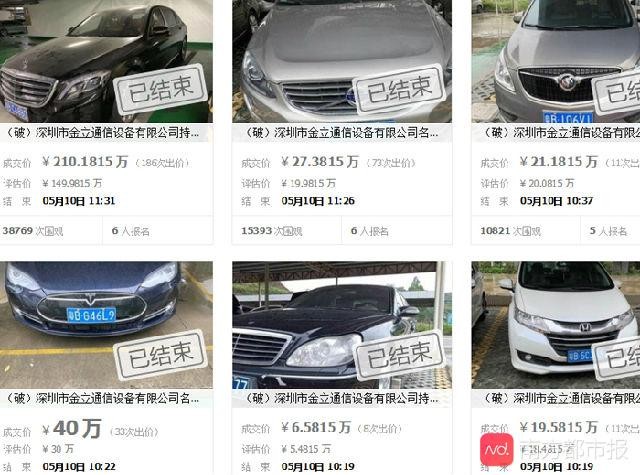 2019年5月10日,金立旗下的18辆车产在淘宝上进行司法拍卖,标的物预评估价总计约400万元,其中,成交价最高的是一辆奔驰S600轿车,以210.1815万元成交。所有标的物成交价约为500万元。