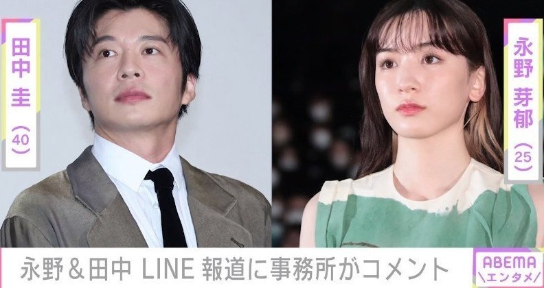 有关双方的LINE聊天记录,永野芽郁所属经纪公司回应:“经本人确认,没有发送过这类信息。田中圭先生是演艺圈的前辈之一,双方并没有交往。”