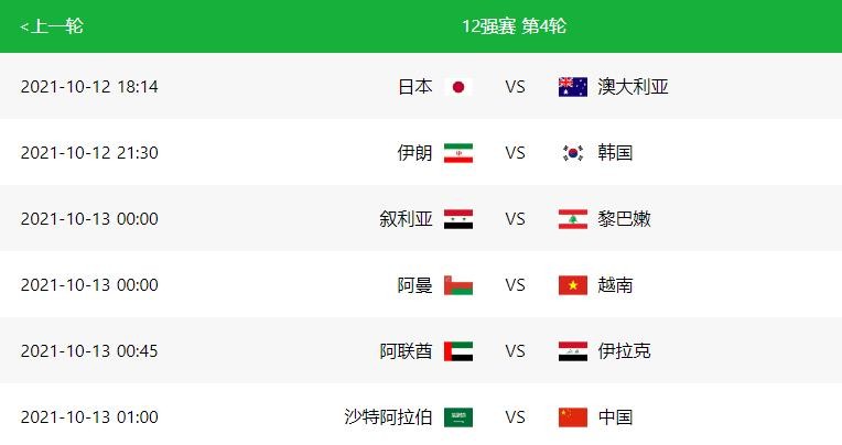 世界杯亚洲区预选赛(12强赛)第四轮赛程