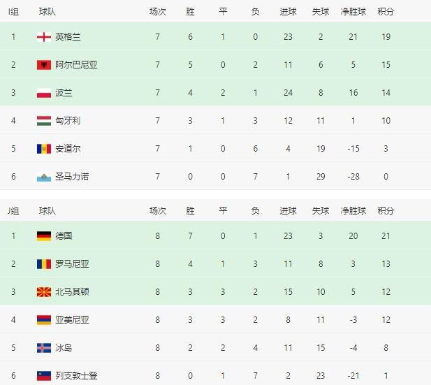 2021年10月12日17时,截止今日,2022年世界杯欧洲区预选赛小组赛第8轮的比赛已经结束11场,本轮剩余14比赛将在今日晚间和明天凌晨开打。目前德国小组积分达到21分,遥遥领先第二名,提前拿到了卡塔尔世界杯的门票。下轮比赛将在11月12日开始。目前截止的欧洲区预选赛各队实时积分见下图。