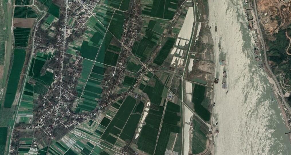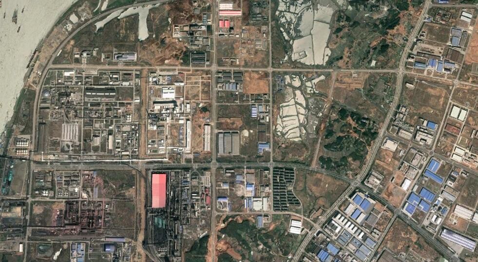 卫星上看安徽铜陵:因铜而兴的沿江城市,市区外有一个江心洲