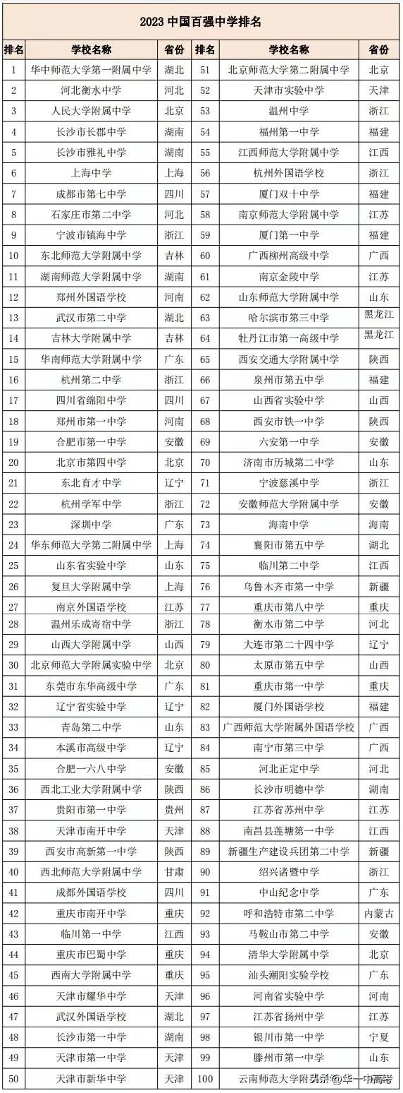 2023年全国百强中学排名已洗牌,前10实力非凡!