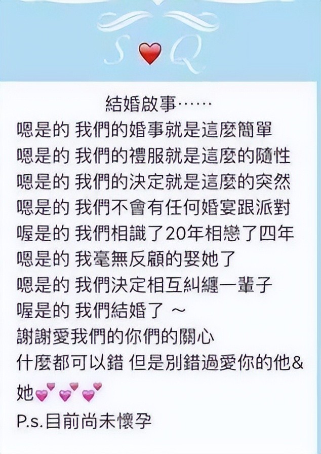 当年结婚的时候就没有像别的女明星一样举行世纪婚礼或者超豪华阵容等,她的婚纱是朋友送的,也没有举行婚礼。