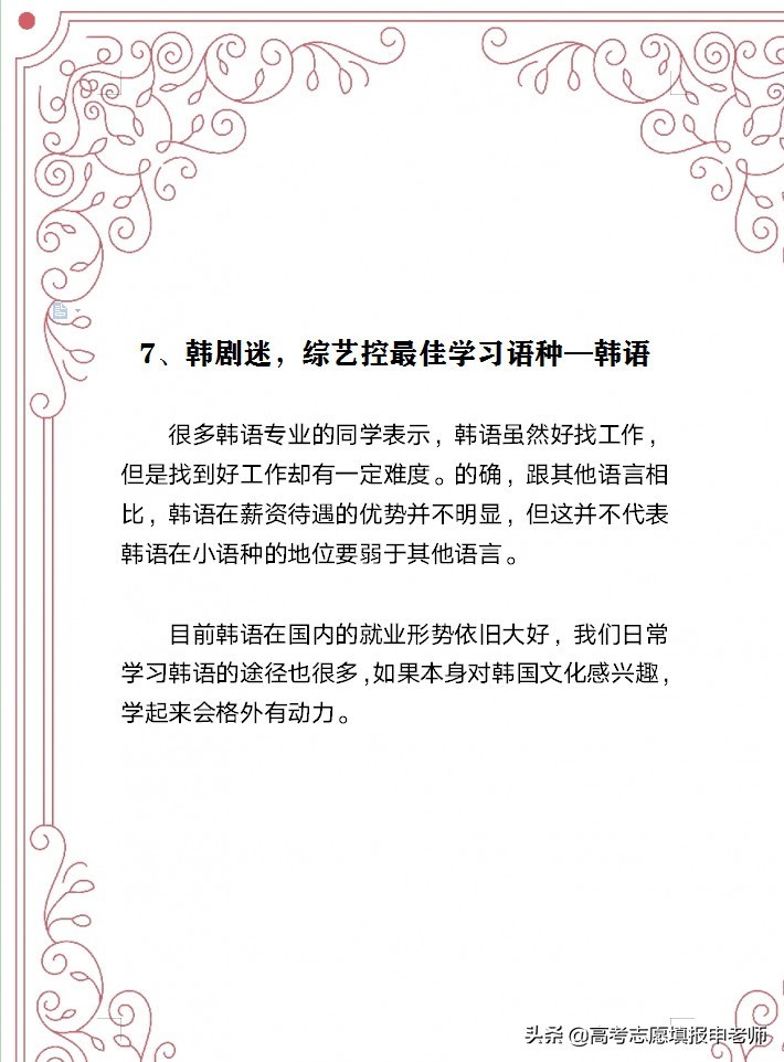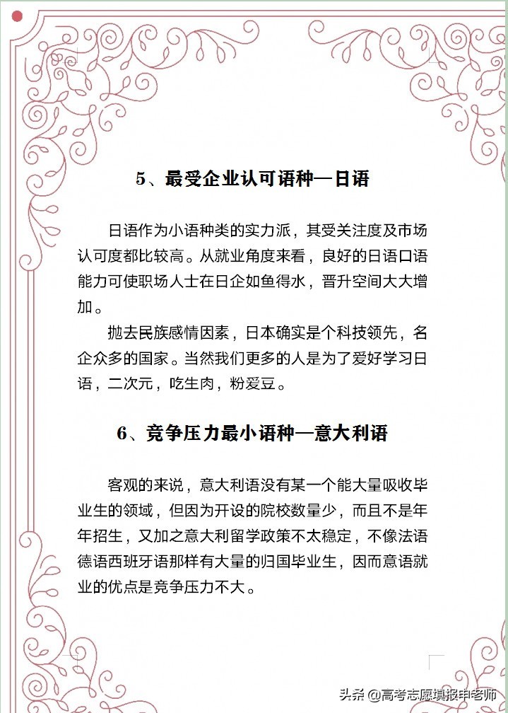 总结:以上7个小语种专业,就业不难,薪酬不低,值得了解一下!如果考生对语言感兴趣,同时对学习的语言所涉及国家的历史、经济、文化、人口等情况感兴趣,不妨可以重点考虑一下。