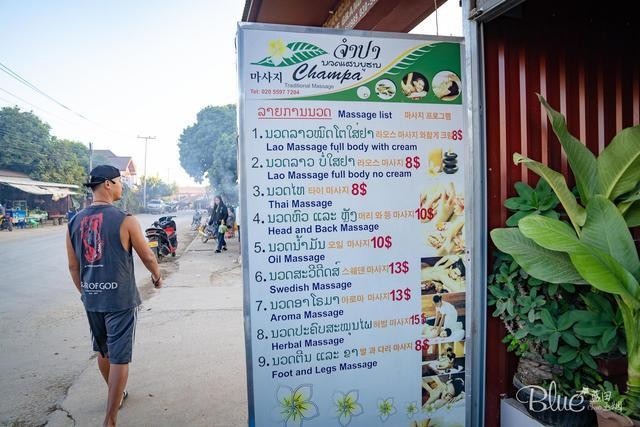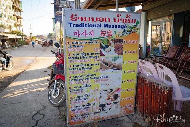 万荣大街上还有不少的按摩院,这个还真有些便宜,不同的部位收费也不同。聪明的店家将招牌做成几国语言,老挝语、英语、中文、韩文,方便招揽不同的游客。老挝的按摩还不错,如果是用的精油按摩,大概需要100元人民币一个钟,用按摩膏的则只需要60元人民币一个钟,手法和力度都很舒服。