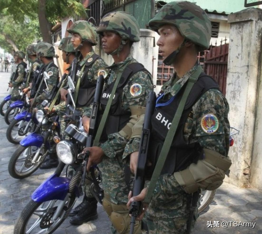 上图就是身穿泰国四色迷彩服的马尔代夫陆军士兵。
